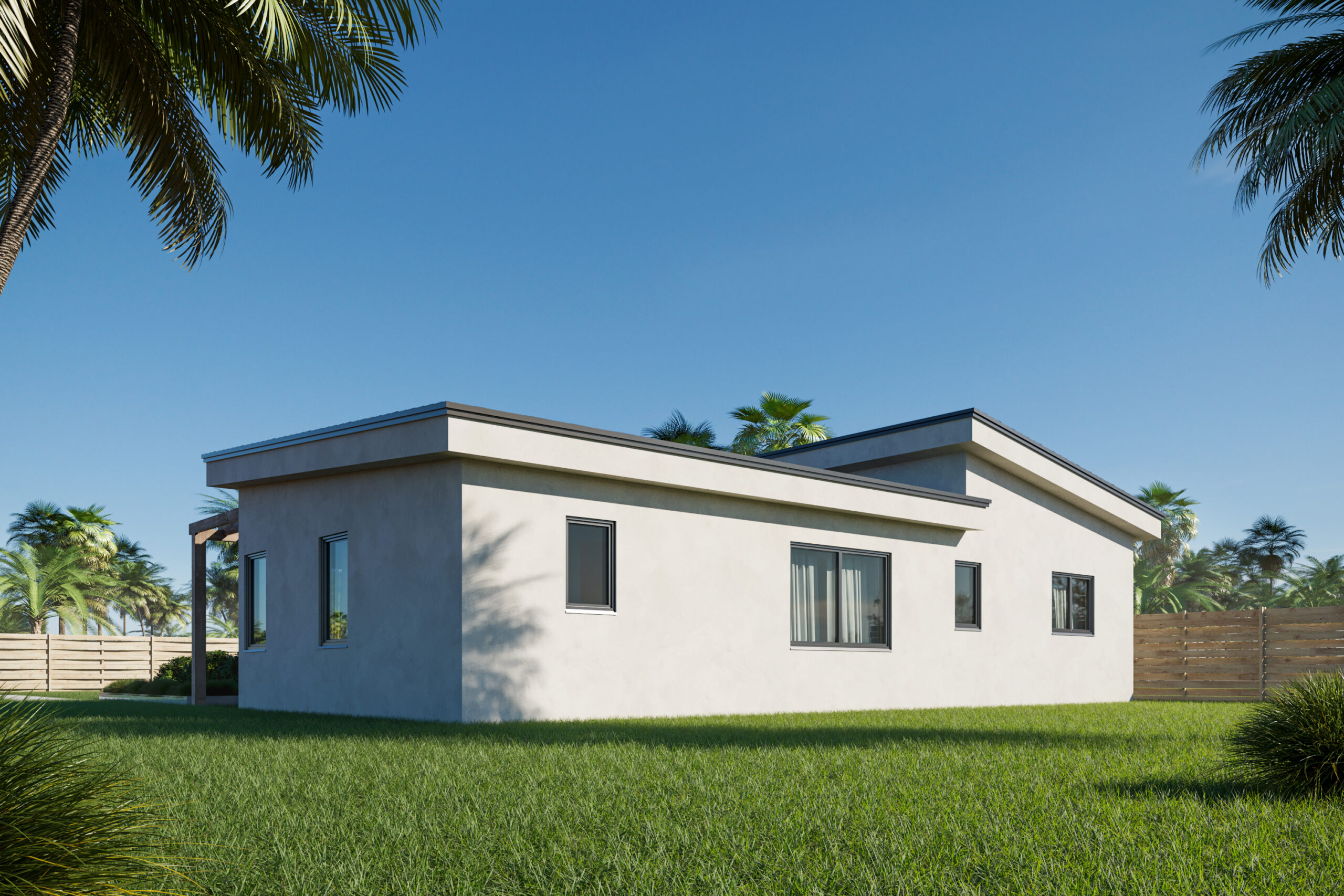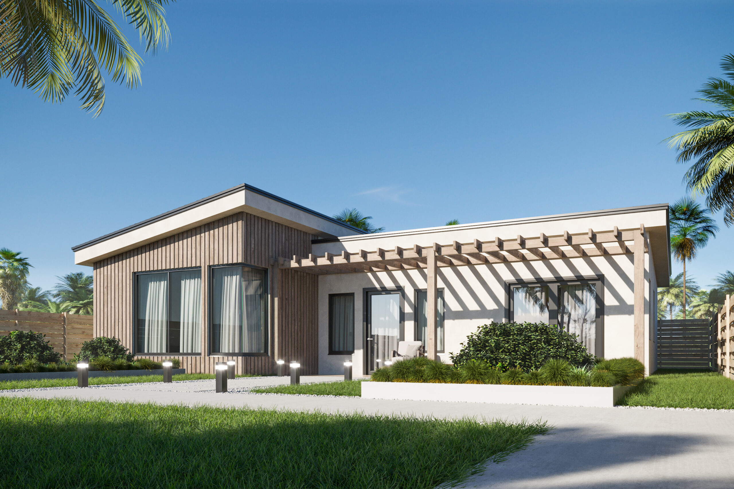 This thoughtfully designed pre-approved ADU offers a compact yet highly functional layout, ideal for modern living. The single-story structure spans approximately 900 sq.ft. and includes two bedrooms and two bathrooms, strategically positioned for privacy and convenience. The open-concept kitchen, dining, and living area creates a spacious, airy environment enhanced by high ceilings and large windows that fill the space with natural light.
